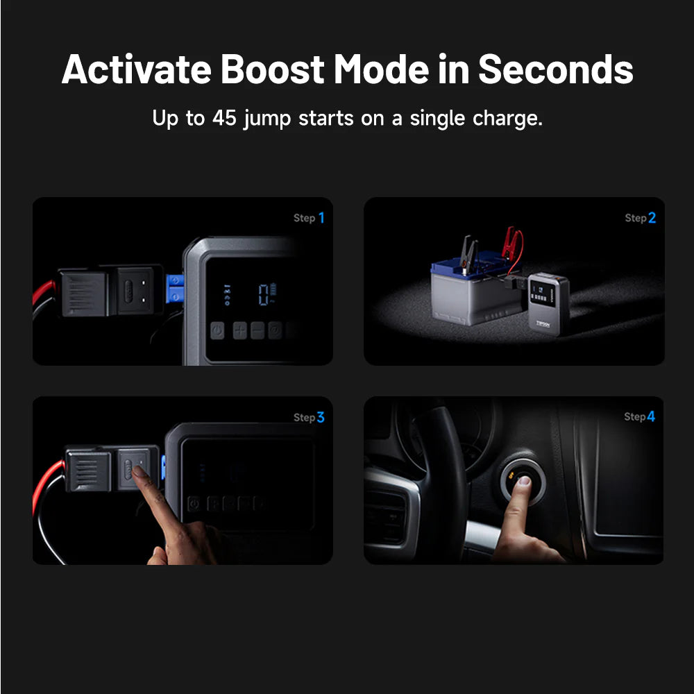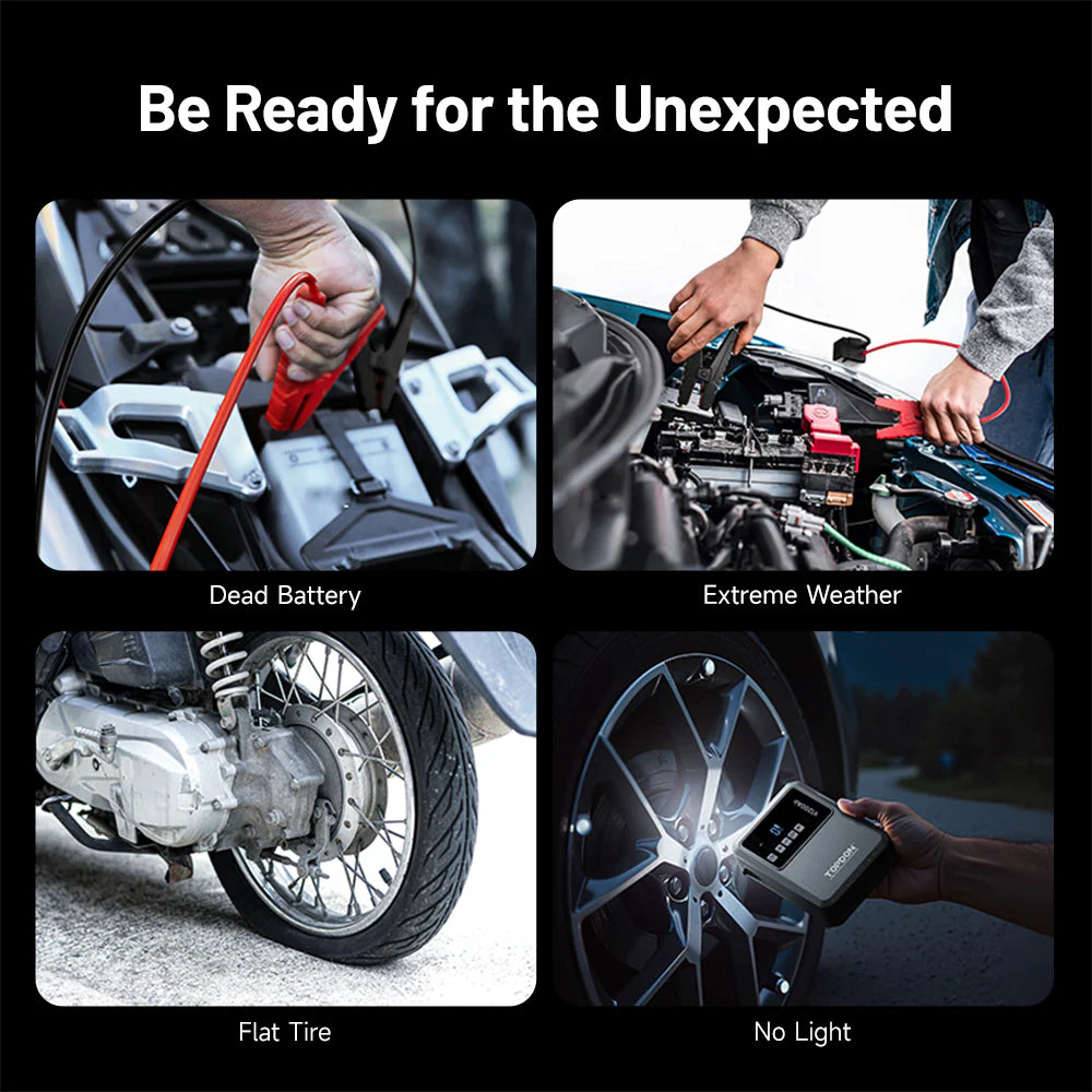 The TOPDON V1200 Air Jump Starter & Air Compressor is a compact, all-in-one emergency power solution designed for drivers who want confidence on the road. Delivering up to 1200 peak amps, it can safely jump-start 12V petrol and diesel vehicles, including cars, SUVs, utes, motorcycles, boats, and lawn equipment.