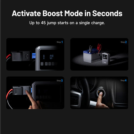 Functions: Jump starter, air compressor, power bank, LED torch