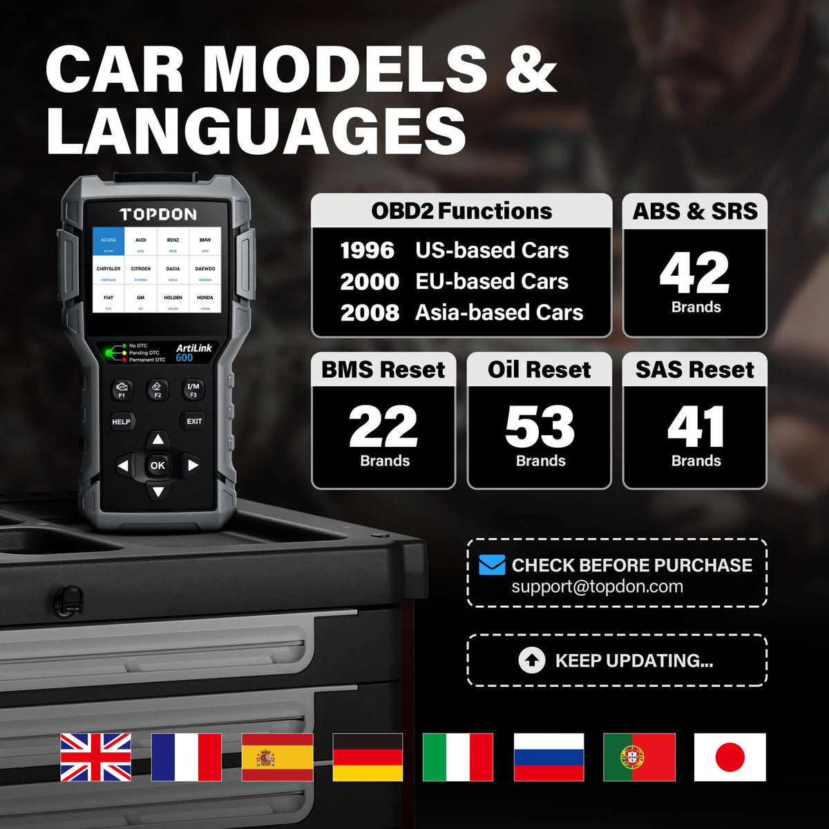 TOPDON ArtiLink600 OBD2 Scanner Car Diagnostic Tool