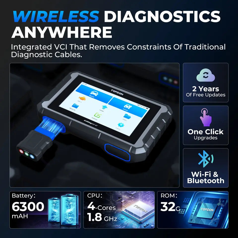 - The ArtiDiag900 BT features Bluetooth connectivity with a range of up to 10 meters, allowing for diagnostic capabilities without the constraints of traditional diagnostic cables. With the VCI integrated into the tablet, this diagnostic tool is portable and easy to store, making it a convenient solution for diagnosing vehicle issues anytime and anywhere.