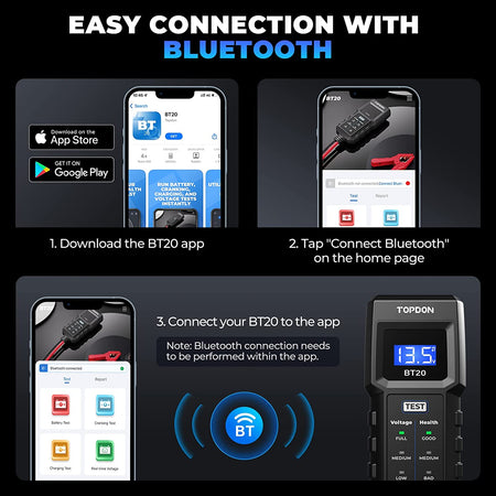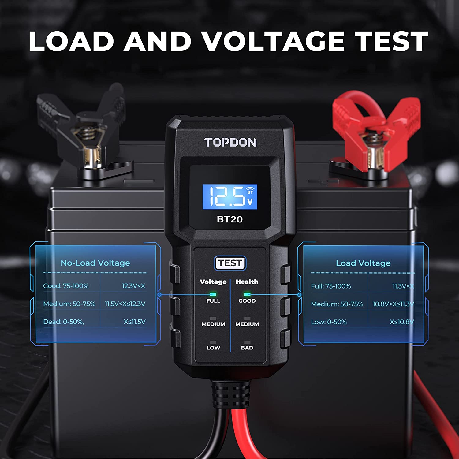 TOPDON BT20 12V Battery Tester, Cranking, Charging Test With App
