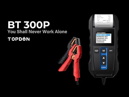 TOPDON®’s BT300P is a 12V lead-acid vehicle battery tester with a Built-in Printer. It can test 100 to 2000 Cold Cranking Amps (CCA) batteries. It’s compatible with Flooded, AGM, GEL, and EFB batteries; and has accredited standards including: CCA, JIS, EN, DIN, SAE and IEC. The BT300P is able to test a battery's actual CCA value, state of health, cranking system, and charging system. Designed with advanced technologies in conductivity, and high-grade rugged materials, it’s perfect for both the shop mechanic or DIY enthusiast to test accurately and safely.