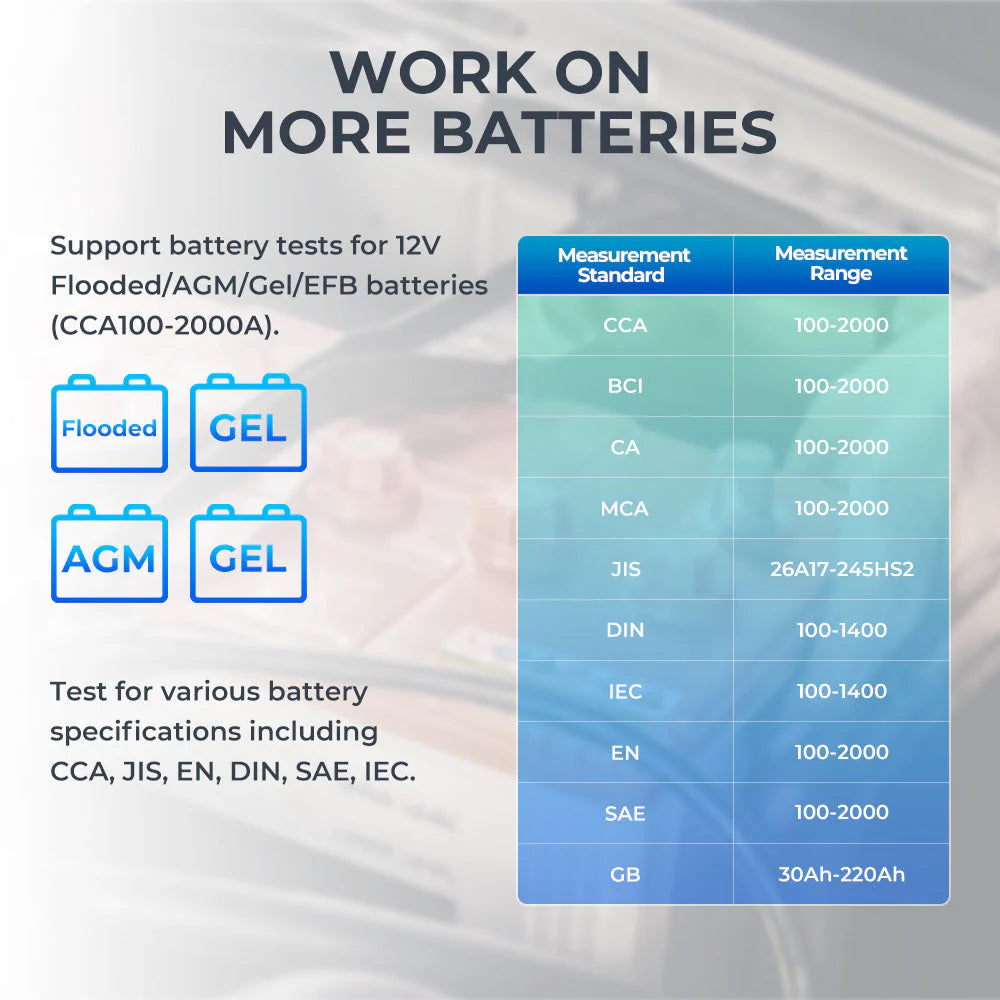 - Supporting charging tests and cranking tests for 12V & 24V Lead-Acid batteries, performing battery tests on 12V batteries. This tester enables professionals to test passenger cars and heavy-duty. With the BT600, technicians will be able to complete even more jobs.
