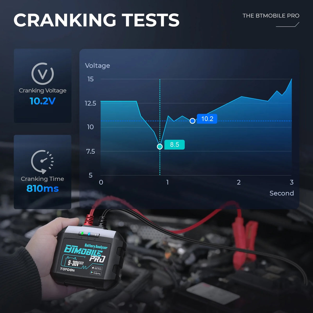 - Perform charging and cranking tests on 12V & 24V Batteries no matter what vehicle you're working on. Once the BTMobile Pro is connected, you will know everything about your battery instantly.