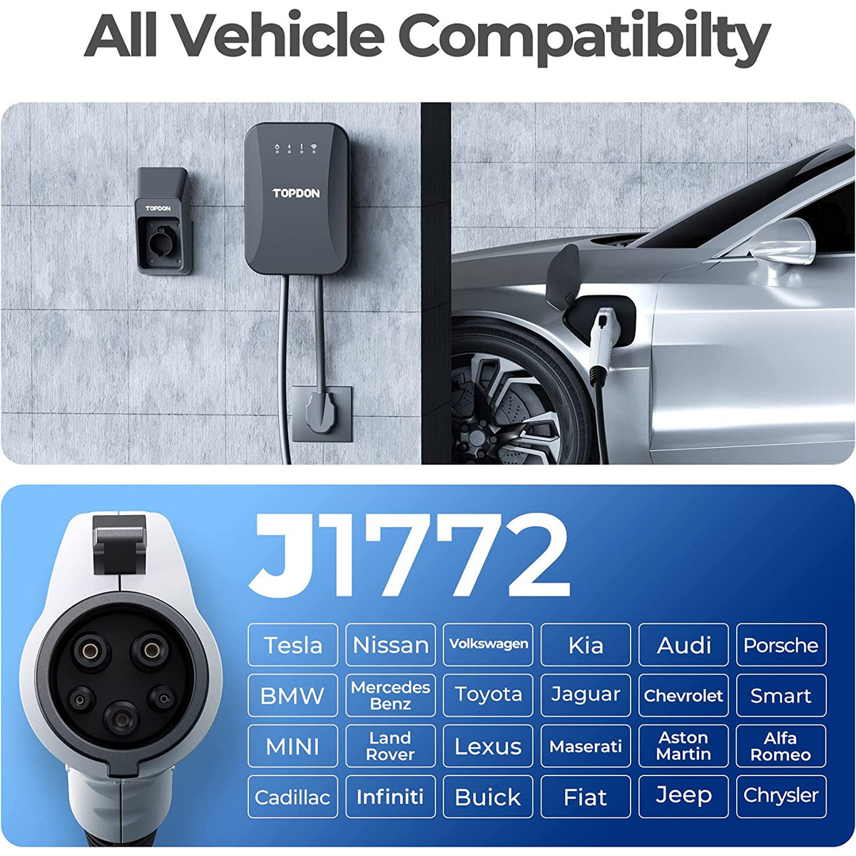 TOPDON Pulse Q Level 2 EV Charger, Smart Home Electric Car Charger