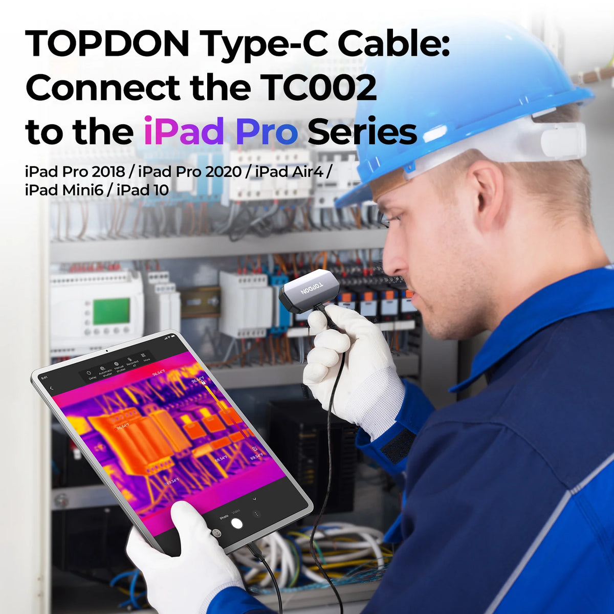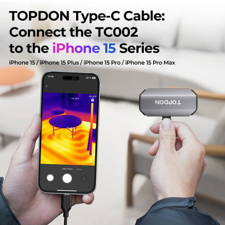 - TOPDON Type-C Cable is designed specifically for connecting TOPDON TC002 with iPhone devices that have a Type-C connector. NOTE: Not compatible with Android devices.