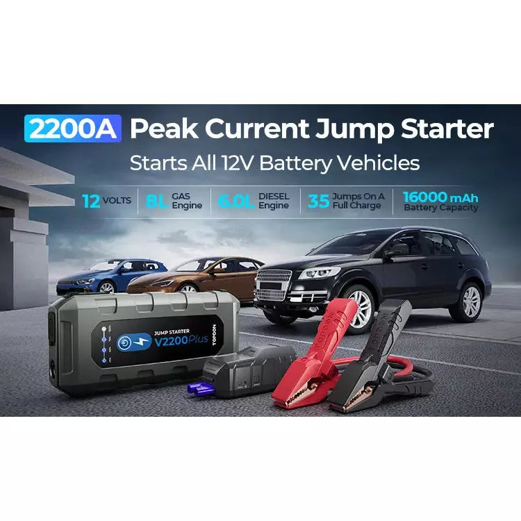 TOPDON V2200Plus 2200A Jump Starter, Battery Tester, Power Bank, 12V Car Starting Device