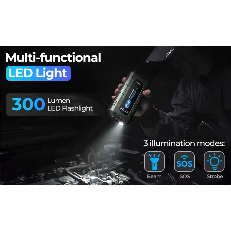 - Jump Start Capacity: 8L Gas, 6L Diesel